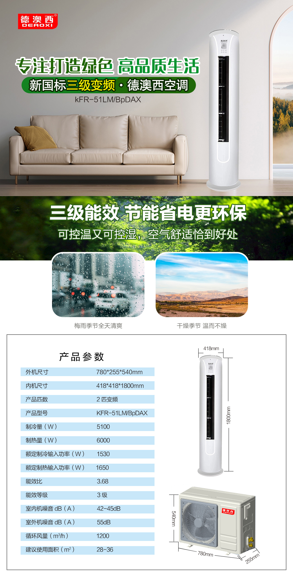德澳西三級變頻冷暖2P
